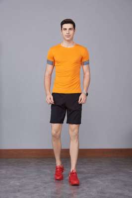 男裝新款情侶裝純色T恤 男上衣潮純棉圓領(lǐng) 短袖T恤 橘色